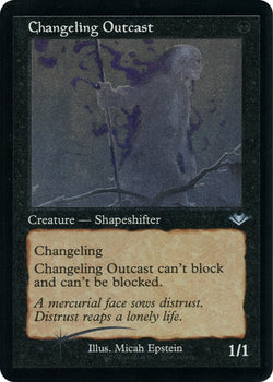 Changeling Outcast can't block and can't be blocked. - Flavor: A mercurial face sows distrust. Distrust reaps a lonely life.