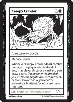 Whenever Creepy Crawler deals combat damage to a player who is afraid of you, that player discards a card and you draw a card. (An opponent is afraid of you if a Horror, Nightmare, enchantment, or face-down creature. you control entered the battlefield or attacked them this turn.)