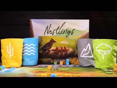 In Nestlings, players assume the role of various birds competing to gain priority across four vastly different biomes - Savannah, Alpine, Freshwater, and Desert. Each round, roll and assign your dice to the four unique biomes, including the wild grasslands. Gain priority and reap the benefits of choosing the first resource as well as discarding a resource to thwart your avian competitors’ strategy.
